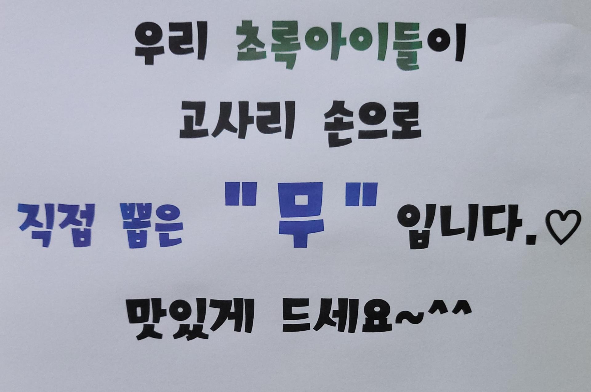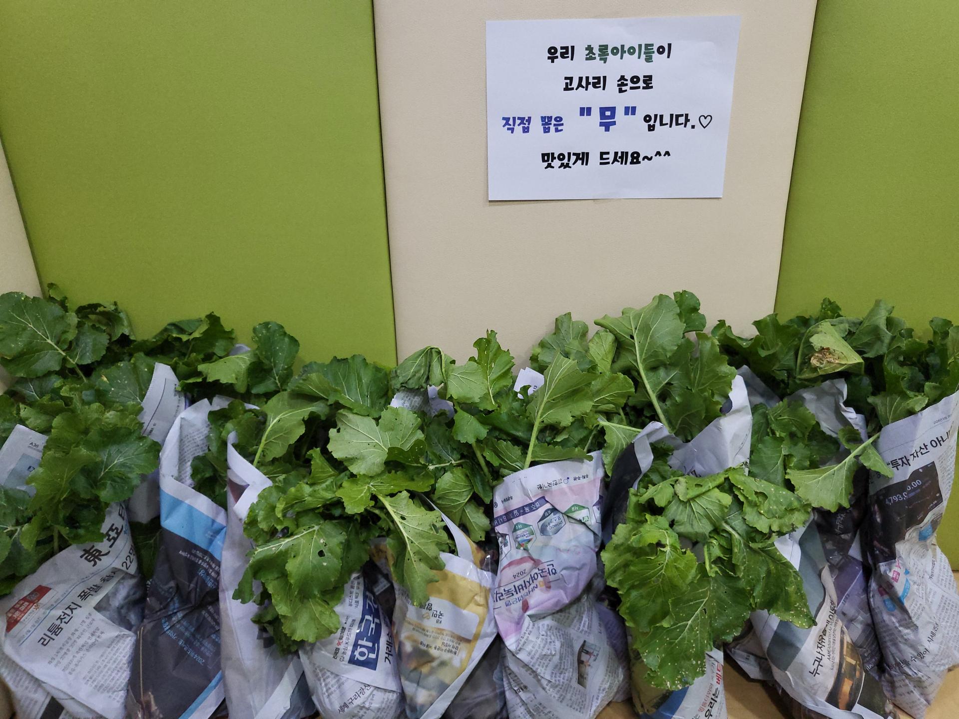 고사리손으로 열심히 키우고 수확한 정성 가~득 담긴 건강한 무농약 무를 가정으로 보내드립니다.
